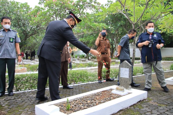 Kabupaten Bekasi – Kapolres Metro Bekasi Kota bersama Forkopimda Kota Bekasi melakukan tabur bunga dalam memperingati Hari Pahlawan tahun 2021 di Makam Pahlawan Bulak Kapal, Bekasi Timur, Selasa pagi (10/11/2021), pukul 08.00 wib