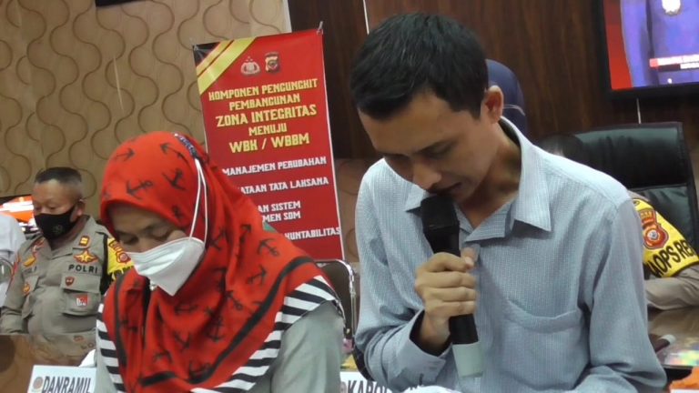 Pria yang kini menjadi perbincangan di masyarakat Sumedang bahkan beritanya heboh hingga seantero Nusantara itu kini hanya bisa menangis dan meminta maaf kepada masyarakat dihadapan polisi dan wartawan di Aula Tri Brata Mapolres Sumedang, Senin (22/11).