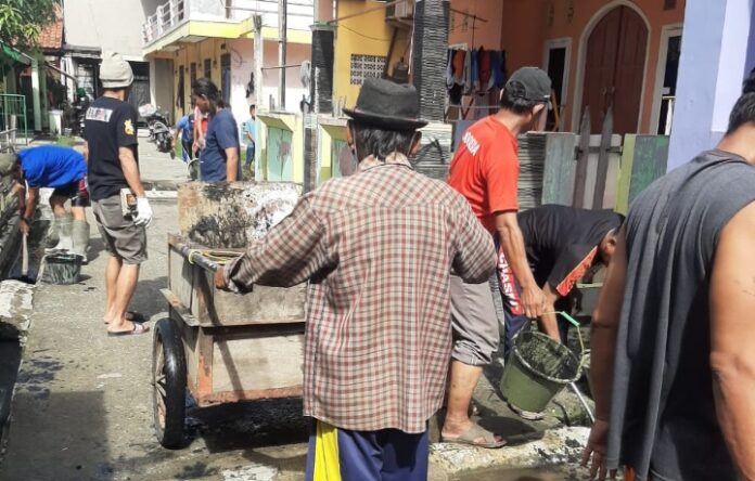 Warga Kp.Buni Asih RT 03 RW 03 Desa Karang Baru, Kecamatan Cikarang Utara, Kabupaten Bekasi lakukan kerja bakti guna antisipasi banjir dan penyebaran nyamuk demam berdarah (Aedes aegypti).