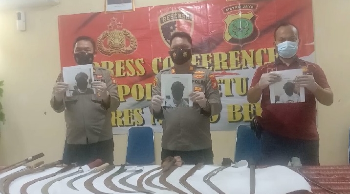 Berbekal informasi warga, petugas yang tergabung dalam patroli rayon presisi langsung mendatangi lokasi berkumpul nya para pelajar,melihat petugas datang kelokasi membuat para pelajar langsung berhamburan melarikan dir, naas bagi tiga pelajar yang langsung di amankan bersama belasan senjata tajam dan delapan motor yang di tinggal pelajar lainnya, oleh petugas tiga pelajar dan barang bukti langsung di bawa ke mapolsek Setu.
