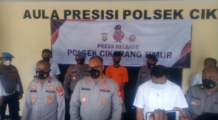 Acara konferensi Pers ini dipimpin langsung oleh Kapolres Metro Bekasi Kombes Pol Gidion Arif Setyawan, S.I.K., SH.,M.Hum yang didampingi oleh Kapolsek Cikarang Timur Kompol J.Sitorus dan Kasat Rrskrim Polres Metro Bekasi.