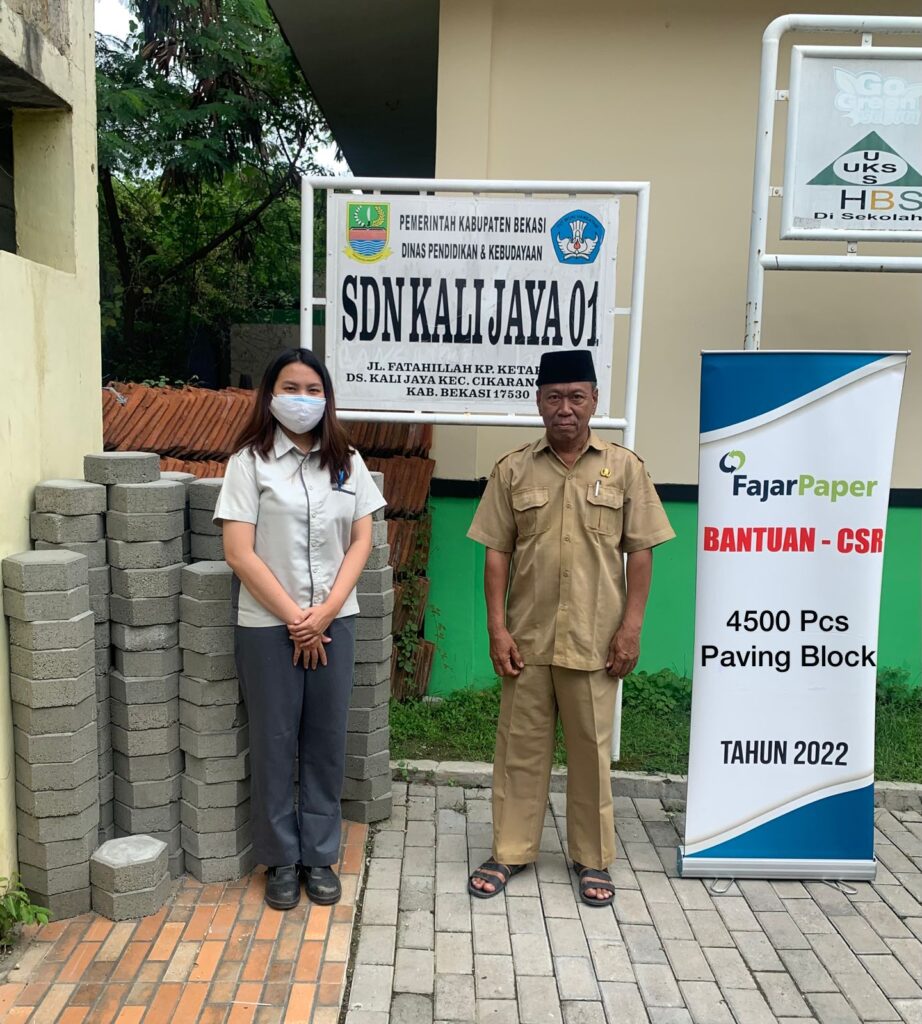 Selain sebagai antisipasi tindakan penyelamatan terhadap warga, FajarPaper juga ikut berpartisipasi dalam pembenahan halaman sekolah dasar di Cikarang Barat yaitu SDN Kalijaya 01, di mana halaman sekolah sudah rusak dan mudah tergenang air. Sering kali setelah hujan turun, genangan air di halaman sekolah tidak langsung mengering , yang mana hal ini juga dapat dijadikan tempat berkembang biaknya nyamuk di halaman sekolah. Untuk itu atas dasar kepedulian FajarPaper terhadap lingkungan sekitar, maka perusahaan memutuskan untuk dapat berpartisipasi menyumbangkan 4500 pcs paving blok yang akan dipergunakan untuk merapihkan dan meninggikan halaman sekolah tersebut.