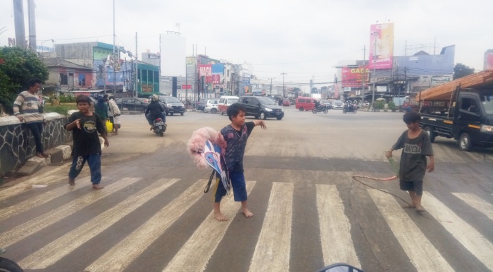 GUE JABAR | Kabupaten Bekasi – Dimasa Pandemi dan dilaksanakan pendidikan secara Daring/Online kini makin marak pengamen cilik di setiap lampu merah seputaran Kabupaten Bekasi.