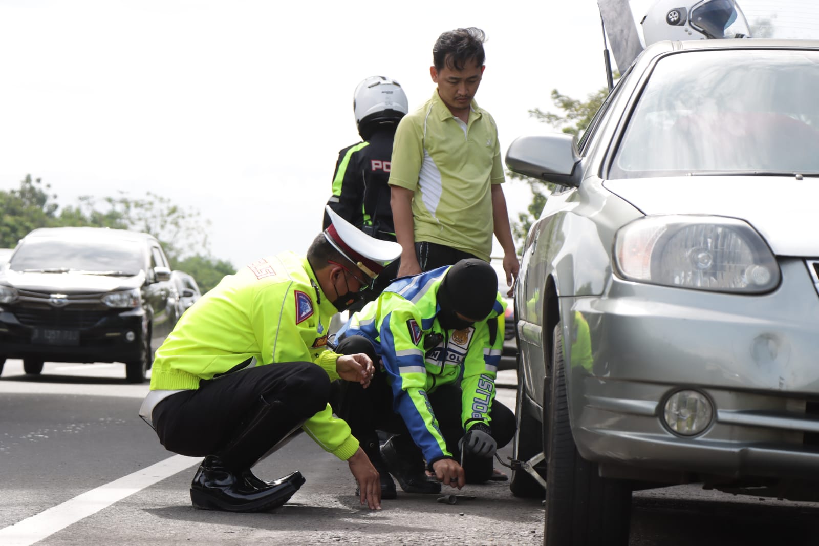 Kapolres Indramayu Bantu Pemudik Yang Alami Pecah Ban di Tol Cipali