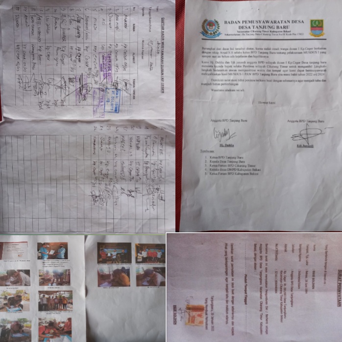 GUE JABAR | KABUPATEN BEKASI – Diduga kangkangi aturan, Ketua Badan Permusyawaratan Desa Tanjung Baru kecamatan Cikarang Timur kabupaten Bekasi ditantang warga Dusun 1 dan anggota BPD gelar forum secara resmi. Pasalnya ketua BPD Tanjung Baru Arsad, SH, diduga menabrak aturan Permendagri No.110 Tahun 2016, tentang Badan Permusyawaratan Desa yang merujuk pada BAB III, Paragraf 3 Pasal 19, Paragraf 5 Pasal 23 Poin 1 dan 2, Paragraf 6 Pasal 26 Poin A, C dan D, Rabu (6/7).