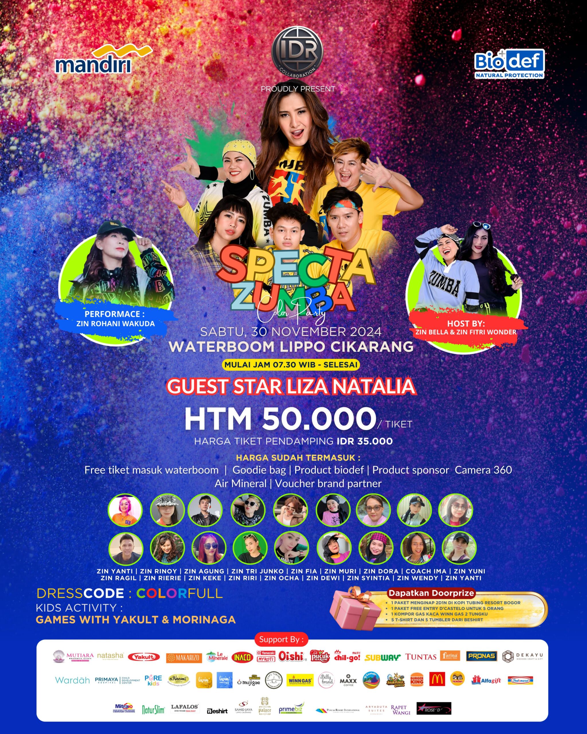 Acara ini menghadirkan Liza Natalia, instruktur Zumba terkenal di Indonesia, untuk memimpin sesi Zumba yang seru dan penuh warna.