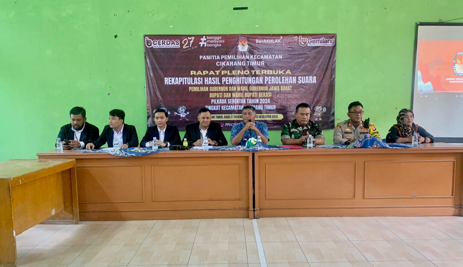 “Hari ini kita baru memulai proses penghitungan suara Gubernur dan Wakil Gubernur serta Bupati dan Wakil Bupati hasil dari seluruh TPS dari seluruh desa yang ada di Cikarang Timur,” Jelasnya. Jumat (29/11/2024).