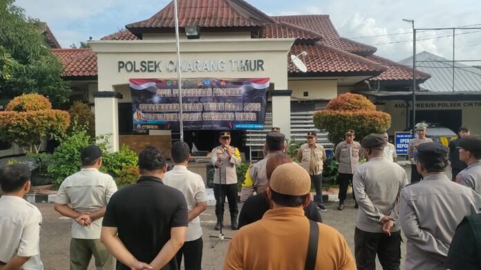 Polsek Cikarang Timur Gelar Apel Pergeseran Pasukan Pengamanan Malam Tahun Baru, Ini Pesan Kapolsek