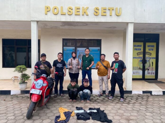 “Setelah mendapatkan informasi atau laporan telah terjadi curas, kami dari Polsek Setu langsung melakukan penyelidikan dan berhasil menangkap Kedua pelaku, para pelaku kita jerat dengan pasal 365 tentang pencurian disertai kekerasan dengan ancaman hukuman 12 tahun penjara,” Pungkas Kapolsek Setu AKP Ani Widayati.