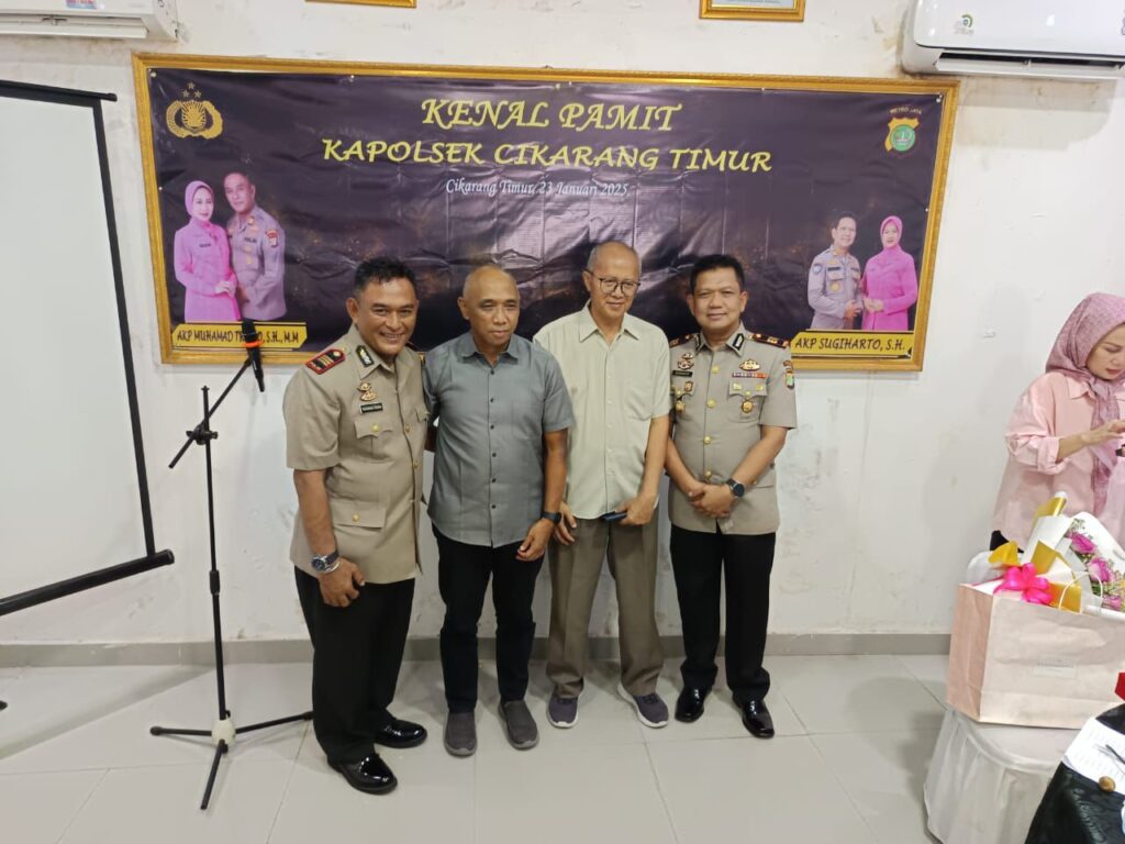 Kabupaten Bekasi – Polsek Cikarang Timur menggelar acara Kenal Pamit Kapolsek Cikarang Barat, di Mapolsek Cikarang Timur, Jl. Raya Citarik Lama, Desa Jatibaru, Kecamatan Cikarang Timur, Kabupaten Bekasi, Kamis 23/1/2025.