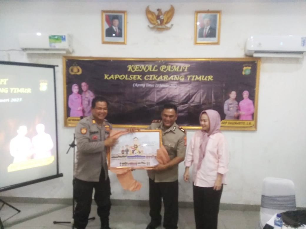 Kabupaten Bekasi – Polsek Cikarang Timur menggelar acara Kenal Pamit Kapolsek Cikarang Barat, di Mapolsek Cikarang Timur, Jl. Raya Citarik Lama, Desa Jatibaru, Kecamatan Cikarang Timur, Kabupaten Bekasi, Kamis 23/1/2025.