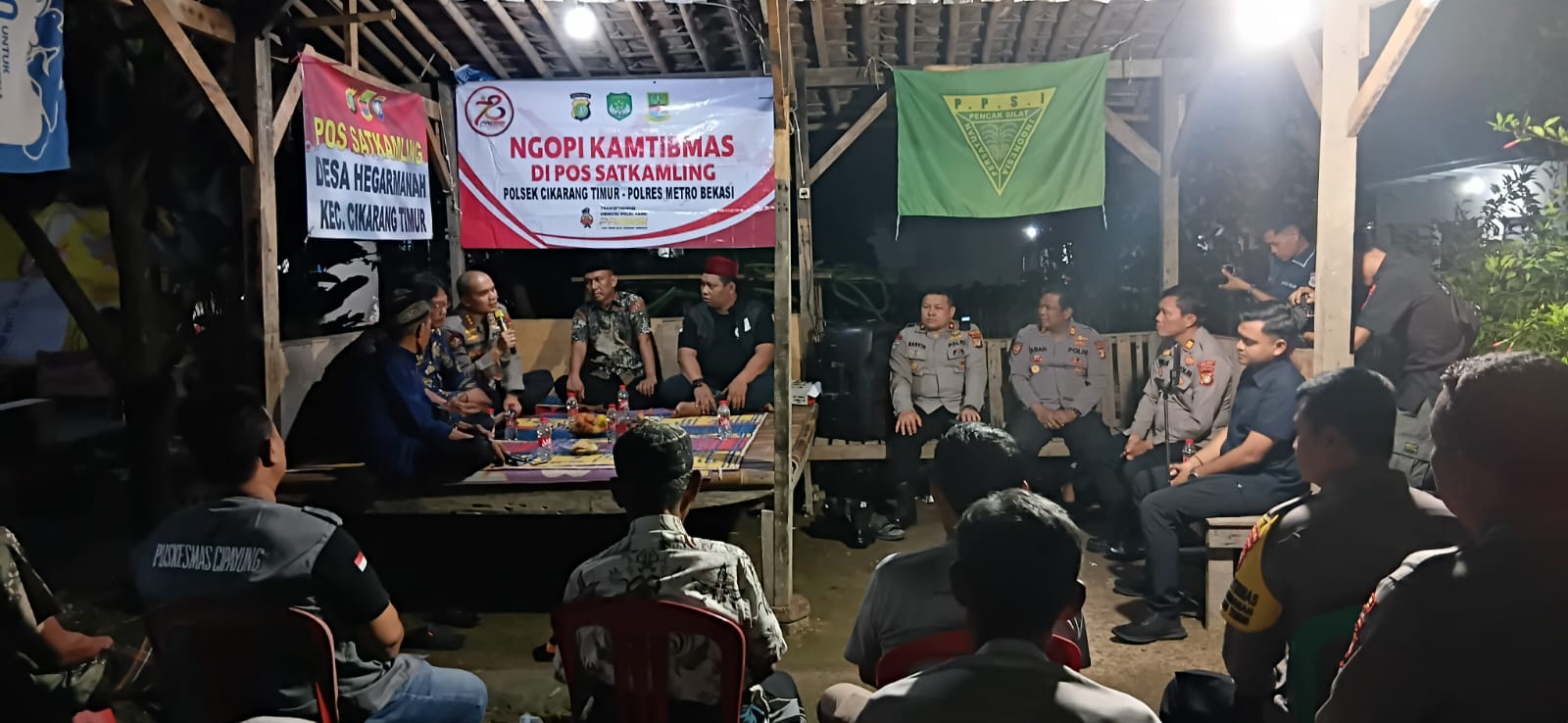 Kabupaten Bekasi – Kapolres Metro Bekasi, Kombes Pol MUSTOFA,SIK.,MH menggelar kegiatan Ngopi Kamtibmas bersama warga di Kp.Penyosogan Desa Hegar Manah Kec Cikarang Timur, pada Sabtu malam, 25/1/2025.