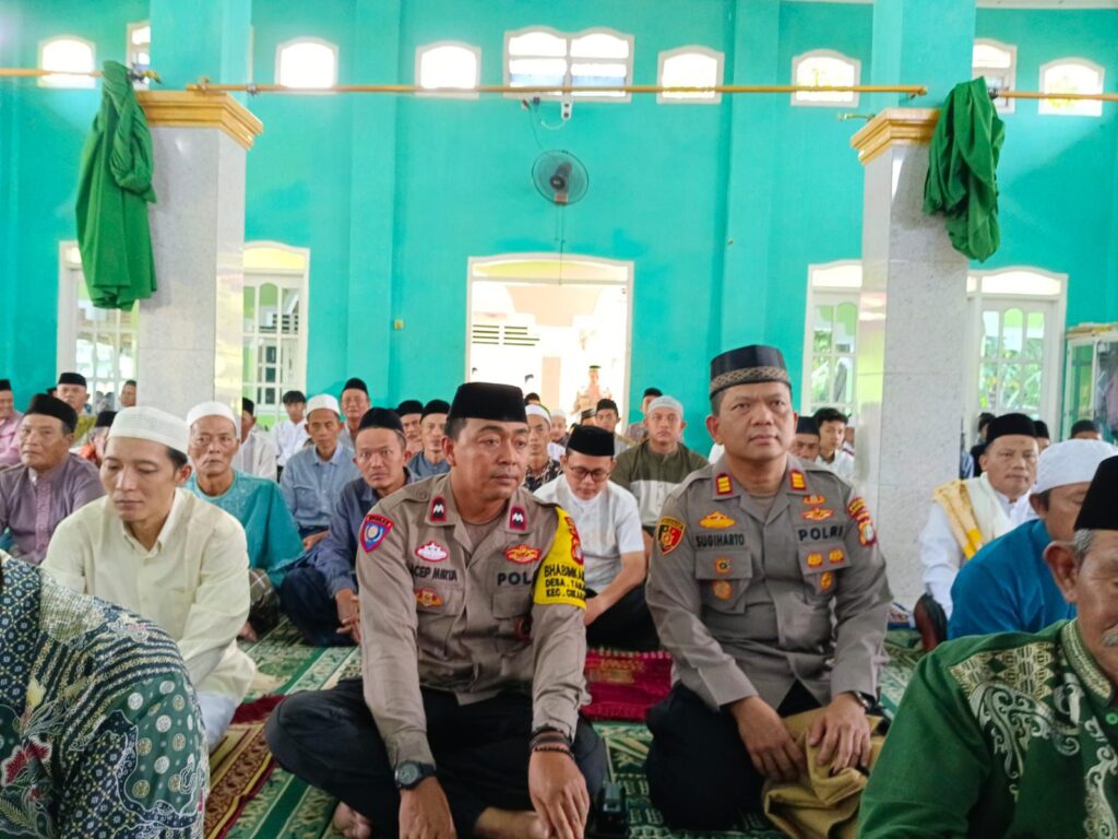 Kabupaten Bekasi – Polsek Cikarang Timur yang dipimpin AKP Sugiharto.,SH melaksanakan kegiatan Safarai Jumat dalam rangka memberikan himbauan dan pesan-pesan kamtibmas kepada jamaah Masjid Darussalam, Kp. Rawa gebang RT. 002/09 Desa Tanjung baru, Kec. Cikarang timur Kab. Bekasi, Jumat 21/3/2025.