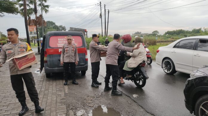 Polsek Cikarang Timur Bagikan Takjil Kepada Pengguna Jalan