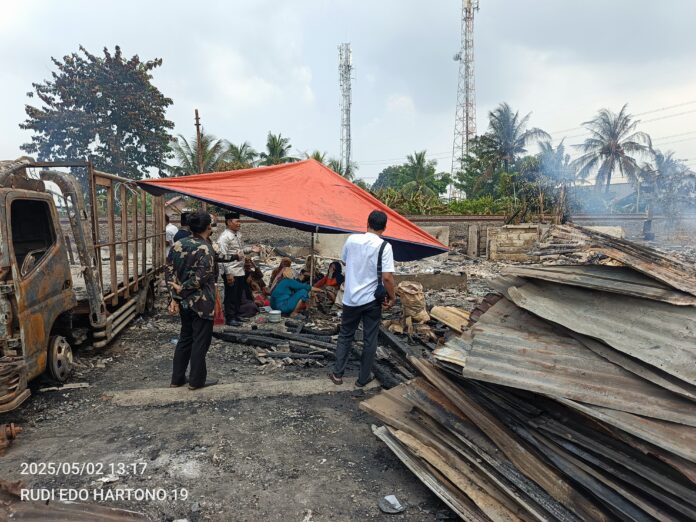 Kabupaten Bekasi – Sejumlah bangunan di Jalan Raya Urip Sumoharjo, Desa Karangsari, Kecamatan Cikarang Timur terbakar hebat, pada Kamis malam 1/5/2025.