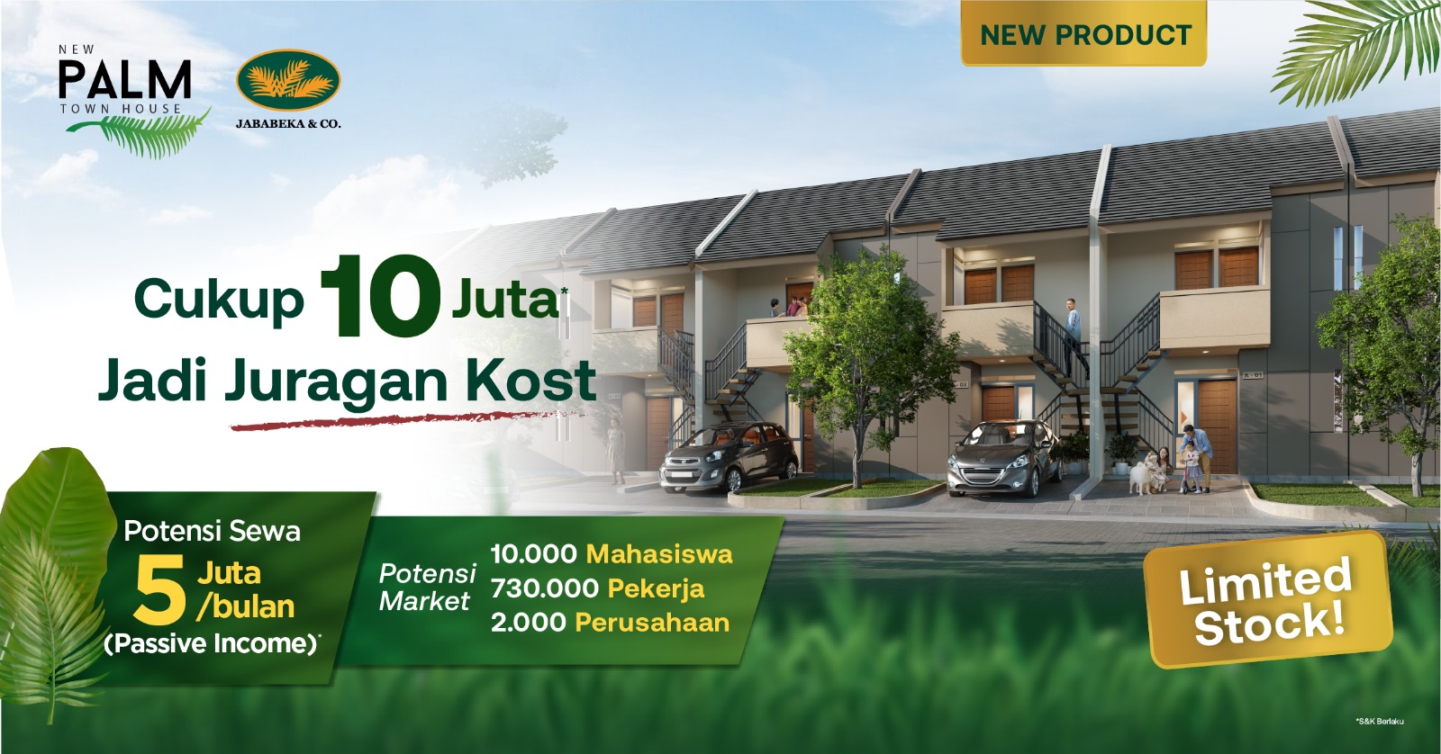 Melihat kondisi ini PT Graha Buana Cikarang anak perusahaan dari PT Jababeka Tbk mengajak masyarakat untuk memanfaatkan peluang ini dengan memulai berbisnis kosan di New Palm Town House. Berbeda dengan town house lainnya, hunian ini tidak hanya dirancang untuk menjadi rumah tinggal tetapi juga kos-kosan. New Palm Town House menawarkan solusi praktis untuk memulai bisnis kosan, para pembeli tidak perlu mengeluarkan biaya untuk renovasi.