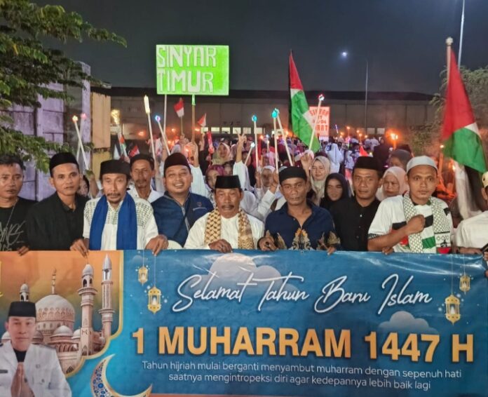 Kabupaten Bekasi – Memperingati Tahun Baru Islam 1447 Hijriah, masyarakat Desa Karangsari yang terdiri dari Kampung Sinyar Barat, Timur dan Utara serta Kampung Citarik Menye menggelar pawai obor yang diikuti ribuan warga, Kamis 26/6/2025.