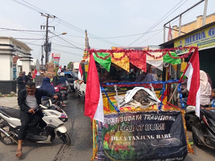 Kabupaten Bekasi – Ribuan masyarakat Desa Tanjung Baru, Kecamatan Cikarang Timur, Kabupaten Bekasi, Jawa Barat mengikuti arak-arakan Kepala Kerbau yang diselenggarakan oleh Pemerintah Desa Tanjung Baru, Jum’at 27/6/2025.
