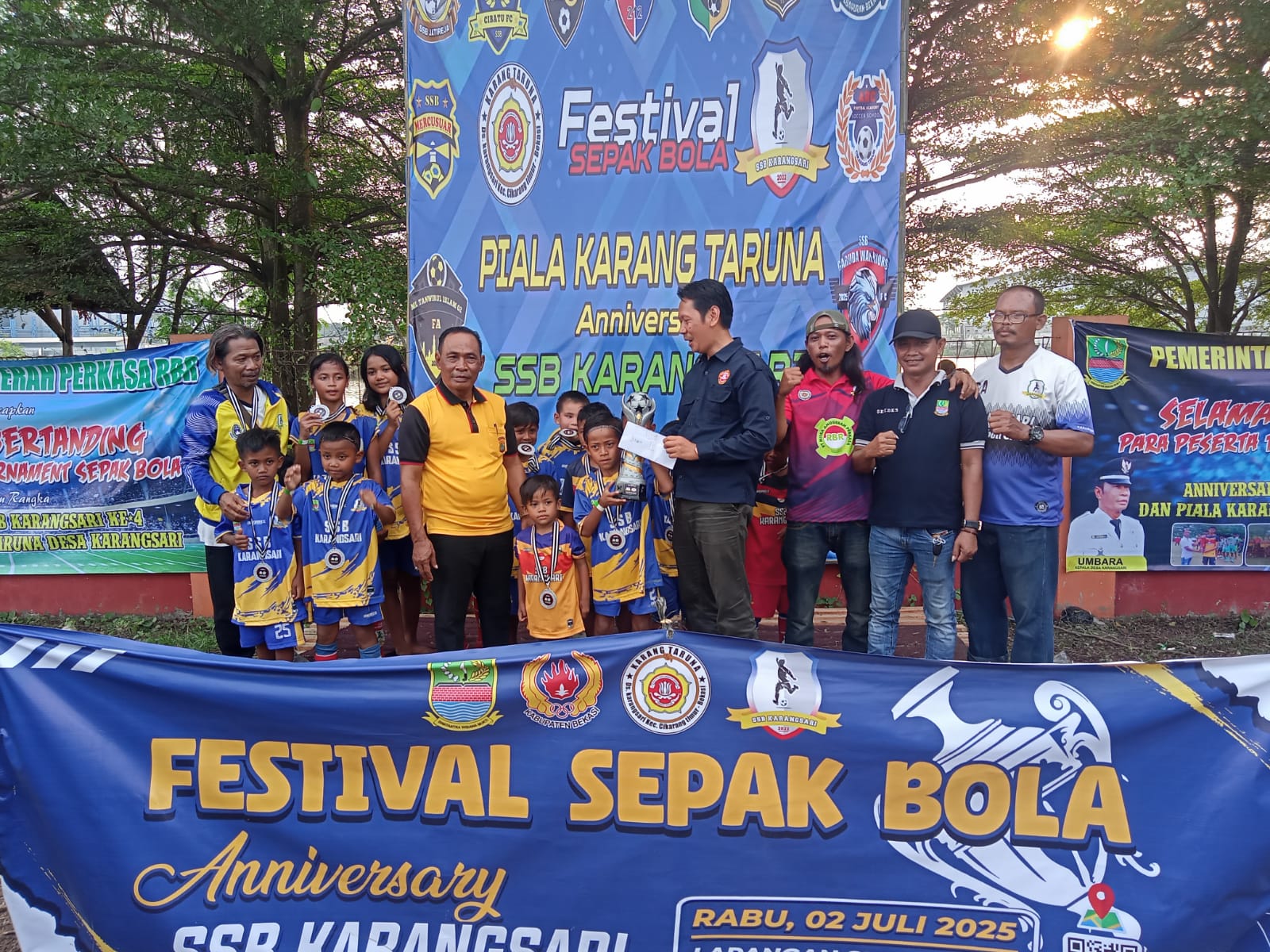 Kabupaten Bekasi – Dalam Memperingati Anniversary SSB Karangsari yang Ke-4, Karang Taruna Desa Karangsari menggelar festival sepakbola untuk memperebutkan piala ketua Karang Taruna Desa Karangsari, Rabu 02/07/2025.