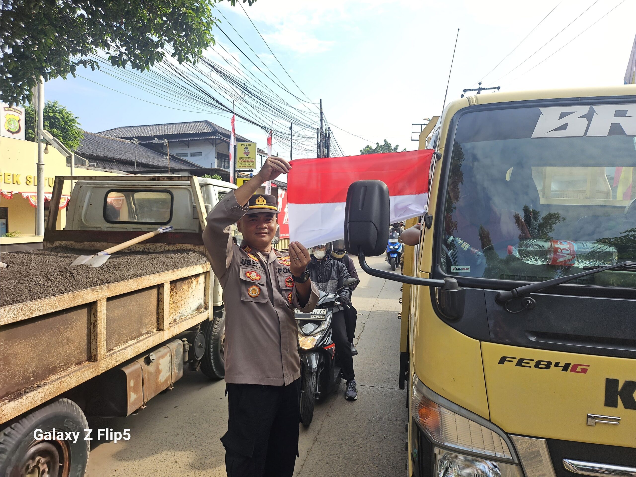 Tumbuhkan Nasionalisme, Kapolsek Setu Bagikan 50 Bendera Merah Putih untuk Warga dan Pengendara