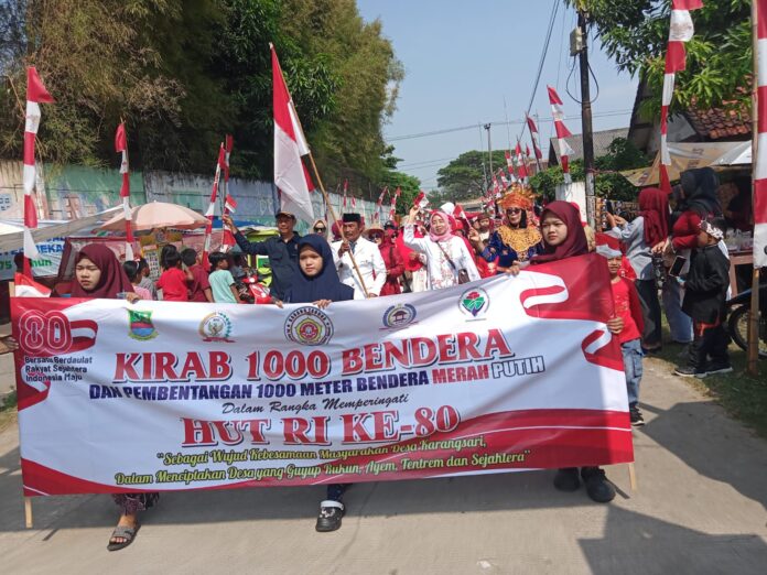 Kepala Desa Karangsari, Umbara mengatakan ada lebih dari 1000 orang yang ikut kirab bendera sepanjang 1 kilometer.