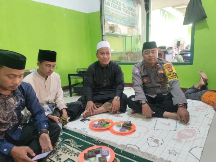 Kabupaten Bekasi – Polsek Cikarang Timur melalui Bhabinkamtibmas Desa Tanjungbaru, Aipda Acep Mirta, turut menghadiri peringatan Maulid Nabi Muhammad SAW 1447 H yang digelar di Majelis Taklim Nurul Iman, Kampung Rawagebang, Desa Tanjungbaru, pada Sabtu (20/9/2025).
