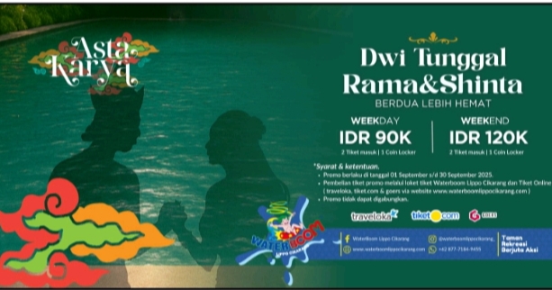 Cikarang, 16 September 2025 — WaterBoom Lippo Cikarang kembali menghadirkan kejutan spesial bagi para pengunjung setianya. Dalam rangkaian kampanye tematik ASTA KARYA, kali ini WaterBoom menawarkan promo tiket masuk istimewa bertajuk “Dwi Tunggal Rama & Shinta” yang memberikan pengalaman seru dan hemat untuk berdua.