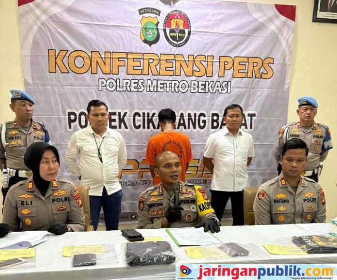 Kabupaten Bekasi – Polres Metro Bekasi menetapkan tersangka terhadap seorang pria berinisial RA alias R (29 th), yang berprofesi sebagai tukang cukur asal Kota Banjar, Jawa Barat, atas penganiayaan yang mengakibatkan tewasnya rekan satu profesinya sendiri yaitu, IP Alisa A (26 th), warga Garut, Jawa Barat.