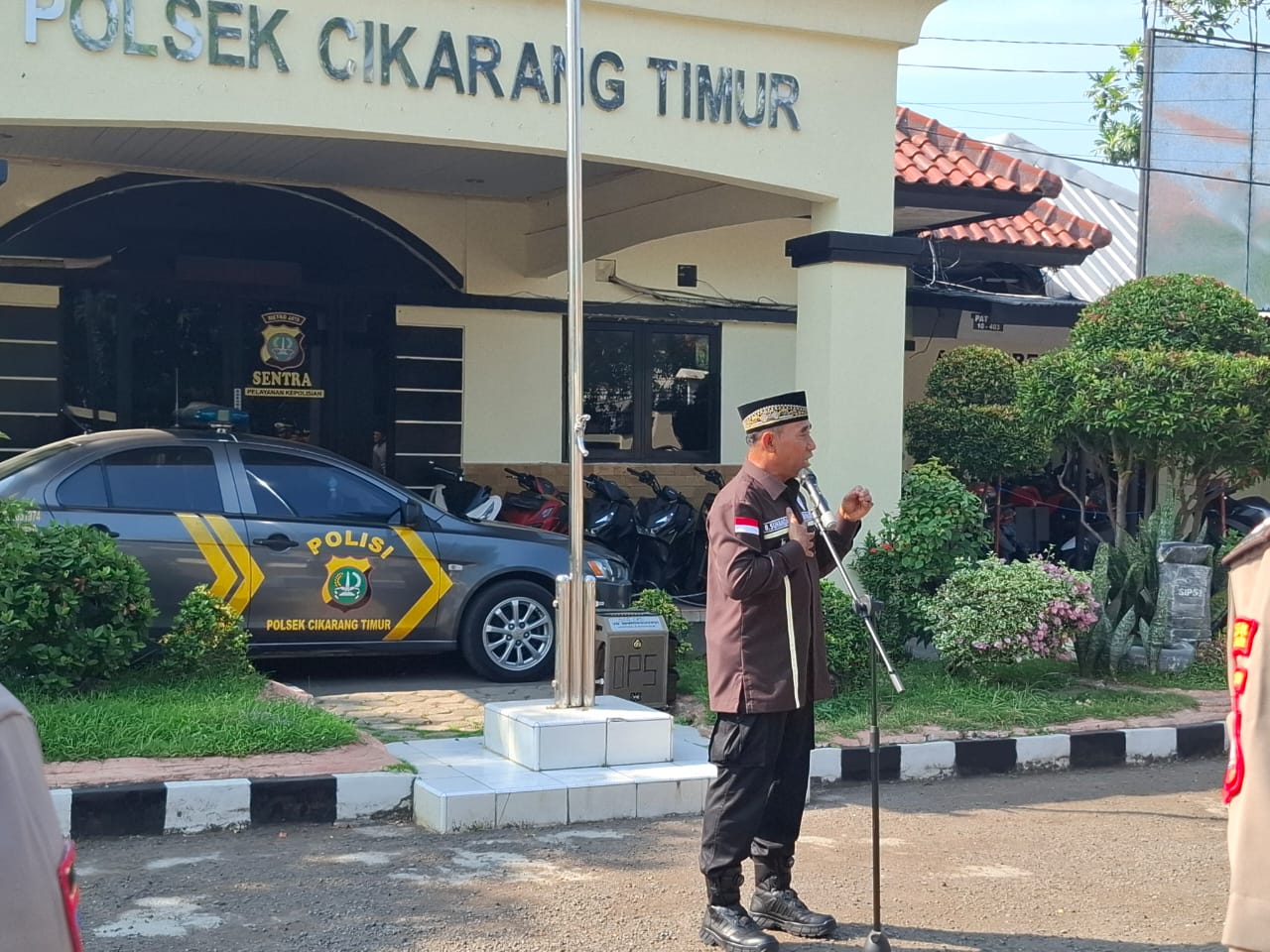 Kabupaten Bekasi – Polsek Cikarang Timur Adakan Bimbingan Rohani dan Mental (Binrohtal) yang diadakan oleh Biro SDM Polda Metro Jaya (PMJ) Pada hari Kamis 9 Oktober 2025 di halaman Polsek Cikarang Timur.