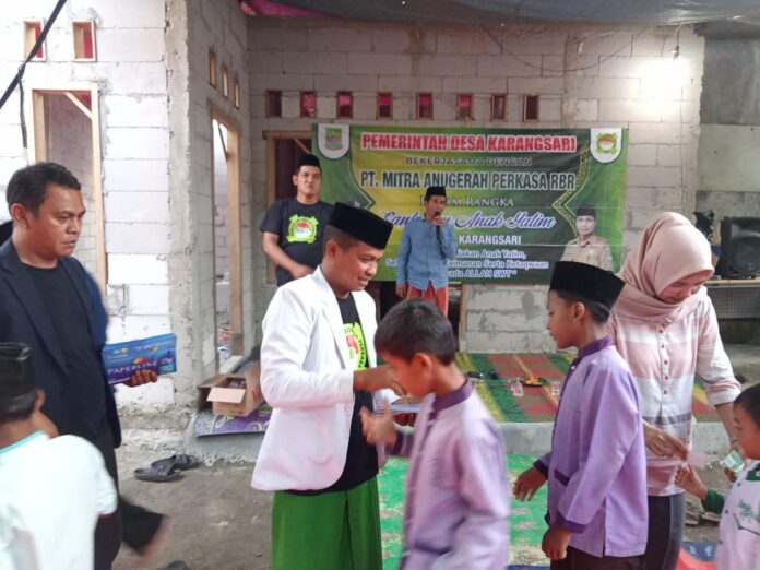 Kabupaten Bekasi – PT Mitra Anugerah Perkasa RBR bersama Pemdes Karangsari rutin santuni yatim piatu se-Desa Karangsari di setiap Jumat pertama setiap bulan, Jumat 10/10/2025.