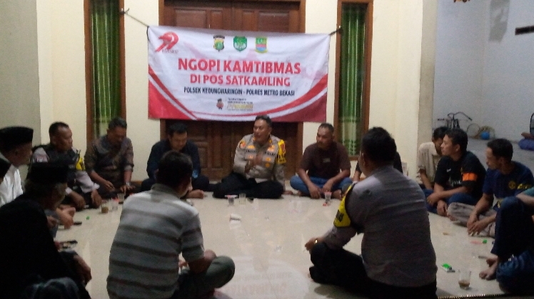 Kabupaten Bekasi – Kapolsek Kedung Waringin Polres Metro bekasi AKP Muhammad Trisno SH MM turun langsung ke masyarakat guna mendengarkan saran, masukan atau curhatan masyarakat melalui program Ngopi Kamtibmas. Kegiatan tersebut digelar pada Sabtu malam (18/10) sekira pukul 22:09 WIB, di Salah Satu kediaman tokoh pemuda,Sdr.Erwin di kampung kendayakan RT 01/06 desa karang sambung kecamatan Kedung Waringin kabupaten Bekasi. Dengan di hadiri sekitar 25 warga, termasuk tokoh masyarakat, tokoh pemuda, Aparatur pemerintahan desa dan BPD