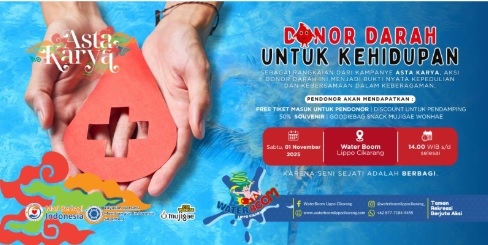 Kabupaten Bekasi – Sebagai bagian dari rangkaian kampanye ASTA KARYA, WaterBoom Lippo Cikarang bersama Yayasan Bersatu Membangun Indonesia Sejahtera, Mari Berbagi Indonesia, serta brand partner Mujigae telah sukses menyelenggarakan kegiatan “Donor Darah untuk Kehidupan” pada Sabtu, 1 November 2025.