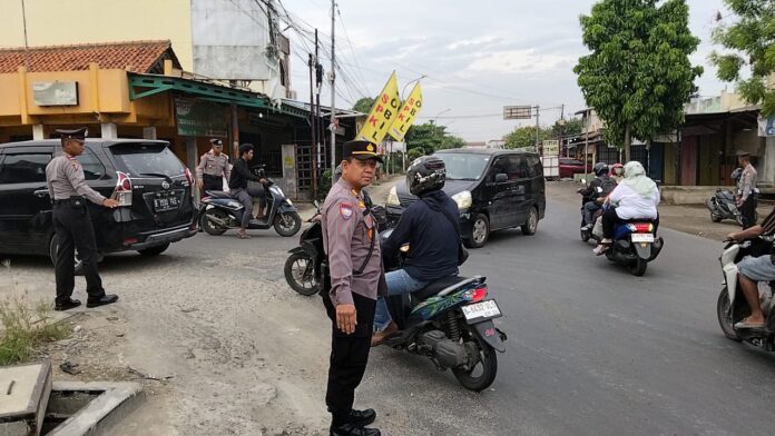 Kapolsek juga turut memantau langsung situasi di lapangan, memastikan arus lalu lintas berjalan lancar dan aman bagi pengguna jalan.