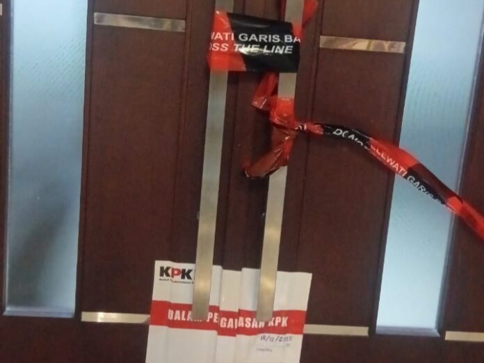 Penyegelan tersebut dilakukan oleh tiga orang penyidik KPK RI yang mengenakan masker datang dan menunjukkan identitas mereka sebelum naik ke lantai dua untuk masuk ke ruang kerja Bupati.