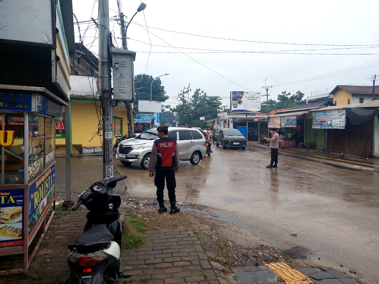 Dalam pelaksanaannya, Bripka Abdul Rohim, anggota Unit Lalu Lintas Polsek Cikarang Timur, tidak hanya melakukan pengaturan arus kendaraan, tetapi juga dengan sigap memberikan bantuan kepada seorang pengendara sepeda motor yang terpeleset saat melintasi perlintasan rel kereta api akibat kondisi licin setelah diguyur hujan pada pagi hari tersebut.