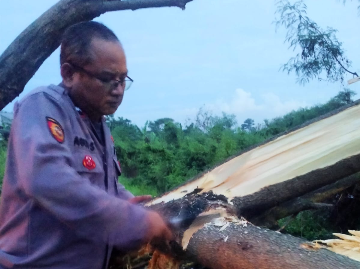 Mendapati laporan dari masyarakat, AKP Odo Supaendi bersama anggota langsung bergerak cepat ke lokasi. Dengan menggunakan peralatan seadanya, petugas memotong batang pohon dan menyingkirkannya ke tepi jalan agar tidak menghalangi kendaraan yang melintas.