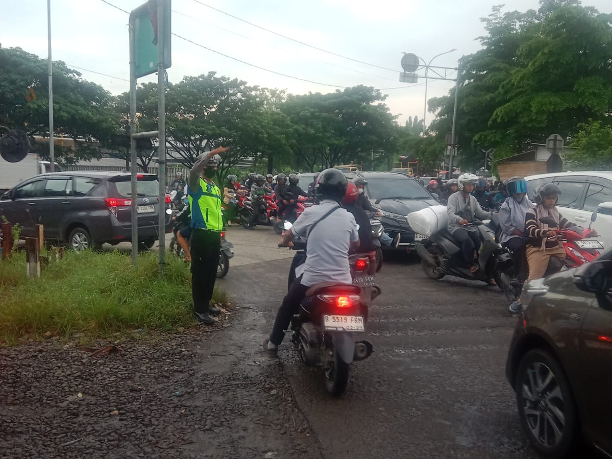 Menyikapi kondisi tersebut, Polsek Cikarang Timur melaksanakan kegiatan pelayanan masyarakat (Yanmas) pagi dengan melakukan penjagaan dan pengaturan arus lalu lintas guna memastikan keamanan serta kelancaran pengguna jalan.