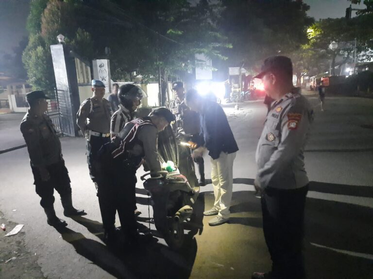 Petugas melakukan pemeriksaan terhadap sekelompok remaja yang berkumpul di pinggir jalan serta memeriksa kendaraan bermotor guna mengantisipasi adanya barang berbahaya maupun senjata tajam. Selain itu, petugas juga memberikan imbauan kamtibmas agar para remaja segera membubarkan diri dan kembali ke rumah masing-masing.