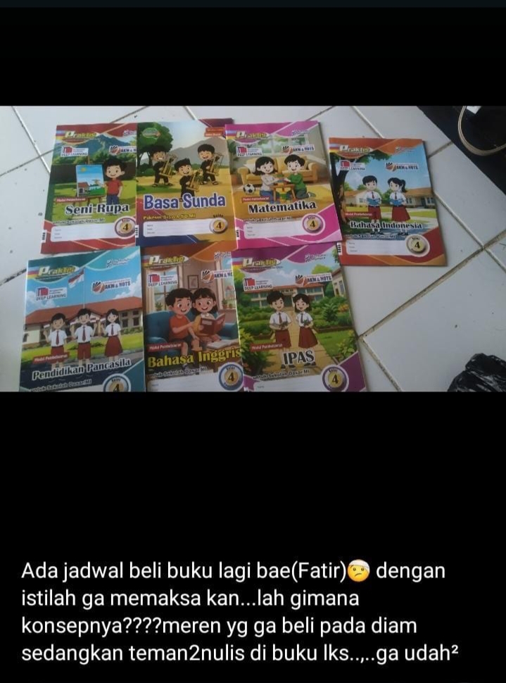 Bahkan ada salah satu wali siswa yang mgatakan bahwa @ada jadwal beli buku lagi Bae 🤕 denga. Istilah ga memaksakan,… Lah gimana konsepnya??? Meren yg ga beli pada diam sedangkan teman2 nulis di buku LKS ..,.. ga udah².
