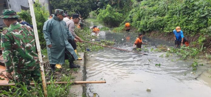 Kabupaten Bekasi – Kapolsek Cikarang Utara, Kompol Sutrisno, mendampingi Forum Koordinasi Pimpinan Daerah (Forkopimda) Kabupaten Bekasi dalam kegiatan Giat korvay Bersih-Bersih Polres Metro Bekasi yang digelar di Kali Ulu, Perumahan Sakura, Desa Karang Raharja, Kecamatan Cikarang Utara, Kabupaten Bekasi, Minggu (8/2/2026).