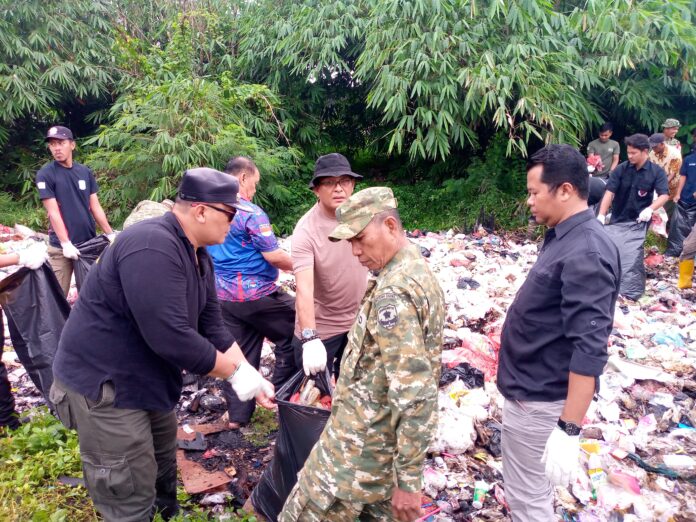 Seluruh peserta secara bersama-sama melaksanakan pembersihan sampah-sampah yang berserakan di lingkungan sekitar lokasi kegiatan dengan penuh semangat dan kebersamaan.
