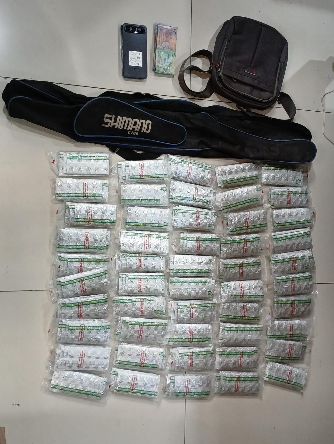Petugas kemudian melakukan penyelidikan dan penggeledahan terhadap seorang pria berinisial T (53). Dari hasil penggeledahan, petugas menemukan barang bukti berupa 500 lembar atau sekitar 5.000 butir tramadol yang disimpan dalam tas pancing warna hitam, uang tunai hasil penjualan sebesar Rp.684.000, serta beberapa barang pendukung lainnya termasuk telepon genggam yang diduga digunakan untuk transaksi.