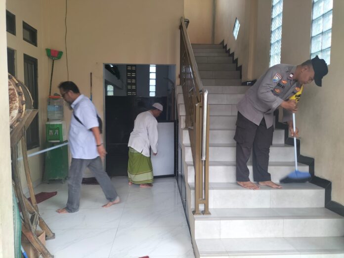 Kabupaten Bekasi – Personel Polsek Cikarang Timur melaksanakan aksi bersih-bersih atau kurve di Masjid Nurul Ikhsan, Kampung Citarik, Desa Jatibaru, Kabupaten Bekasi, pada Rabu (25/2/2026) sore.
