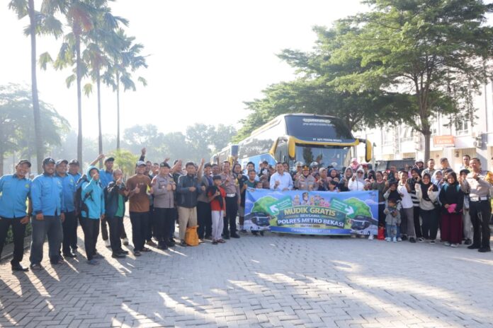 Kabupaten Bekasi – Dalam rangka memberikan pelayanan dan kemudahan bagi masyarakat yang hendak pulang ke kampung halaman, Kapolres Metro Bekasi Kombes Pol. Sumarni secara resmi melepas peserta program Mudik Gratis Polres Metro Bekasi yang digelar di kawasan Hollywood Junction Jababeka, Cikarang Utara, Kabupaten Bekasi, Jumat (13/3/2026).