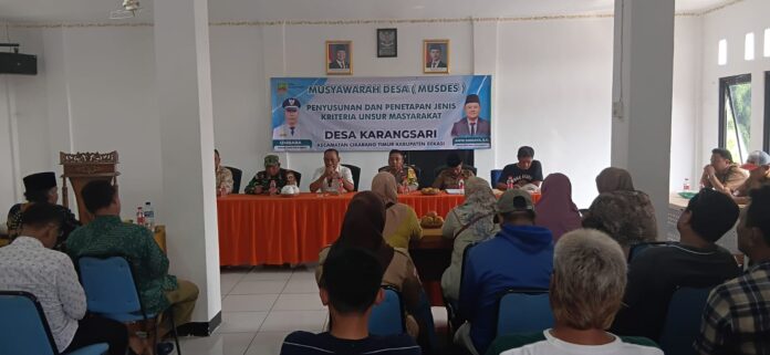 Bekasi – Pemerintah Desa Karangsari, Kecamatan Cikarang Timur, Kabupaten Bekasi, sukses menyelenggarakan Musyawarah Desa (Musdes) dalam rangka penetapan daftar unsur kriteria masyarakat untuk tahapan pencalonan Ketua BPD pada Selasa (14/4/2026).