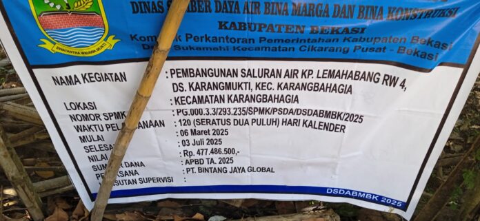 Kabupaten Bekasi – Kegiatan pembangunan saluran air Kp.Lemah Abang Desa Karang Mukti Kecamatan Karang Bahagia mendapat tanggapan dan komentar dari Ketua Umum DPP LSM Gada Sakti Nusantara ( GANAS ) Brian Shakti.